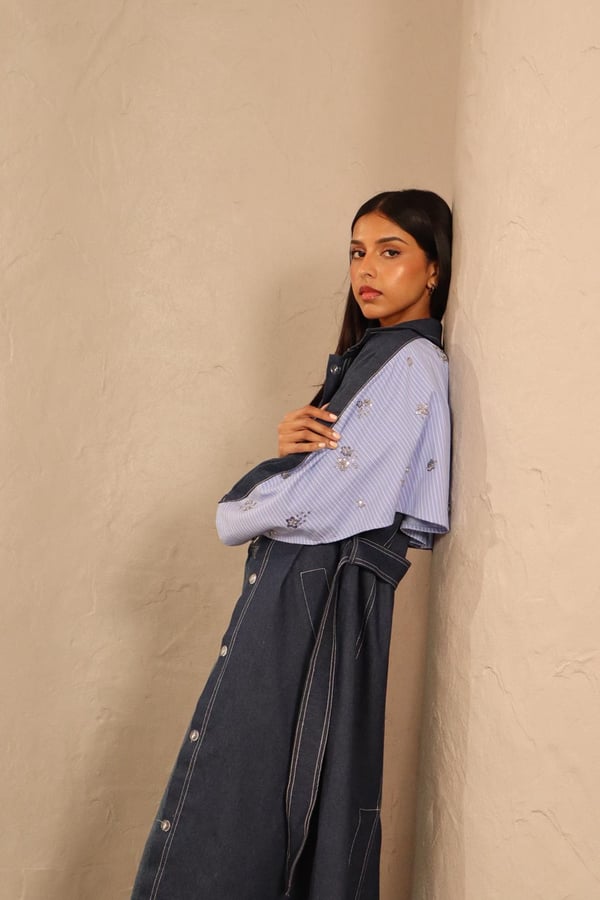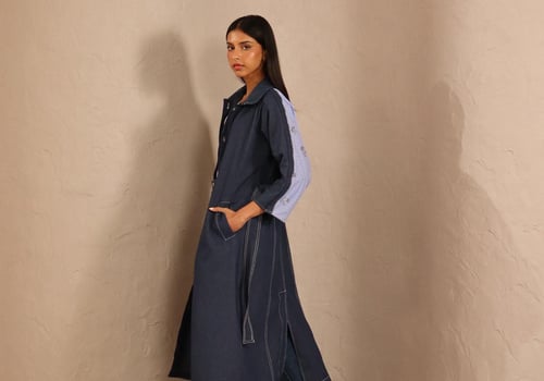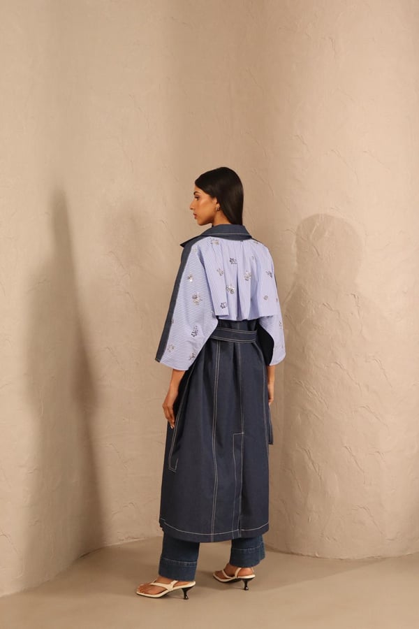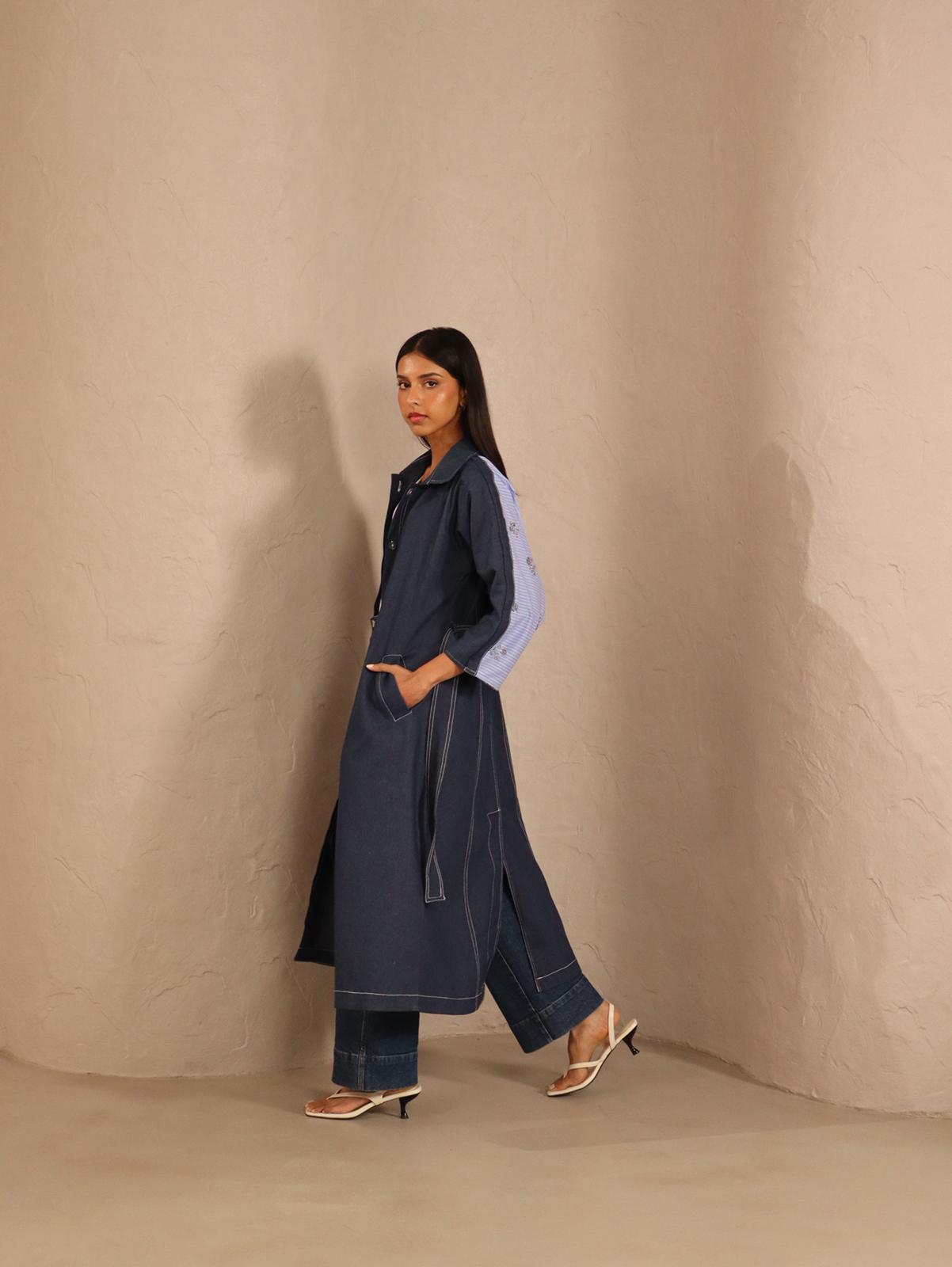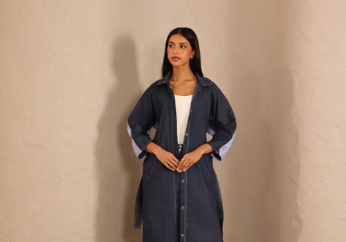 Color: navyTextiles: Denim One piece Trench Coat DRY CLEAN or HAND WASH