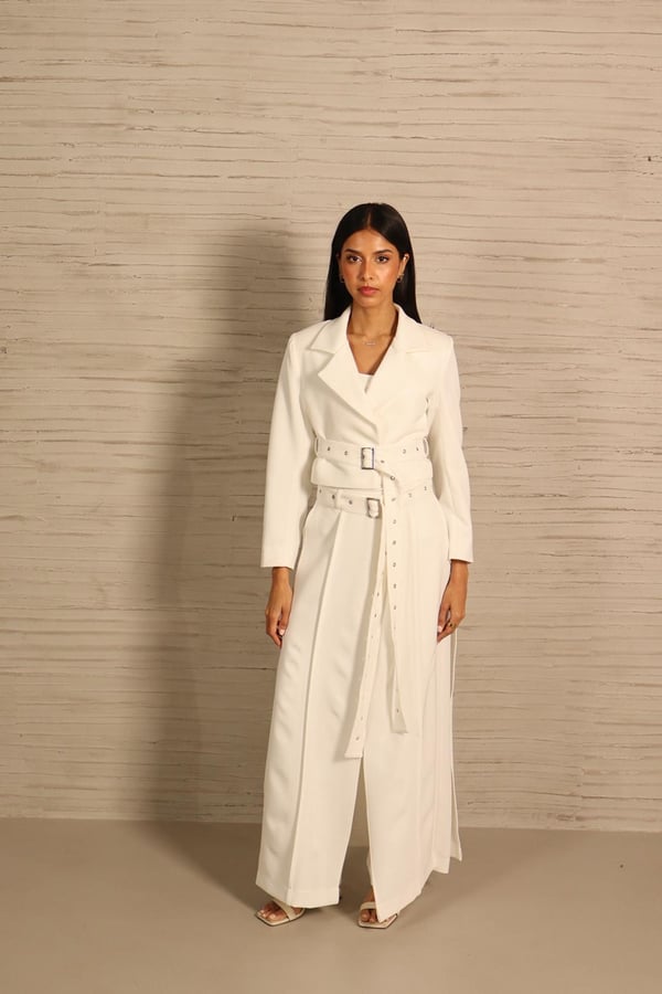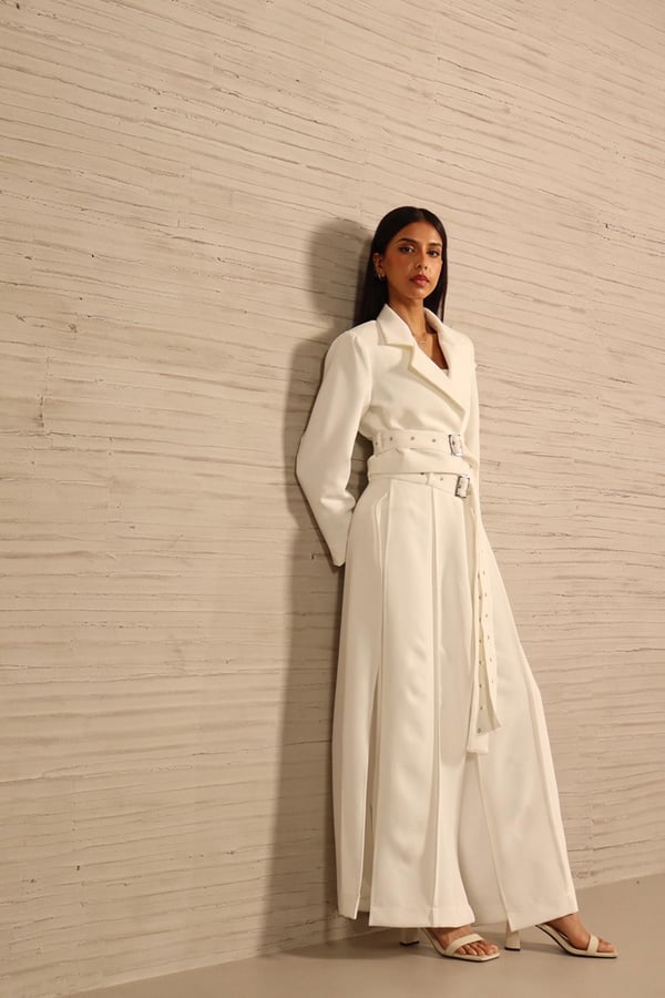 Color: whiteTextiles: crepeeTwo pieces blazer with pantDRY CLEAN or HAND WASH